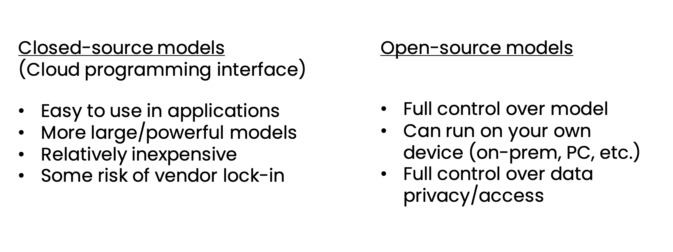 Consider open vs. closed source.