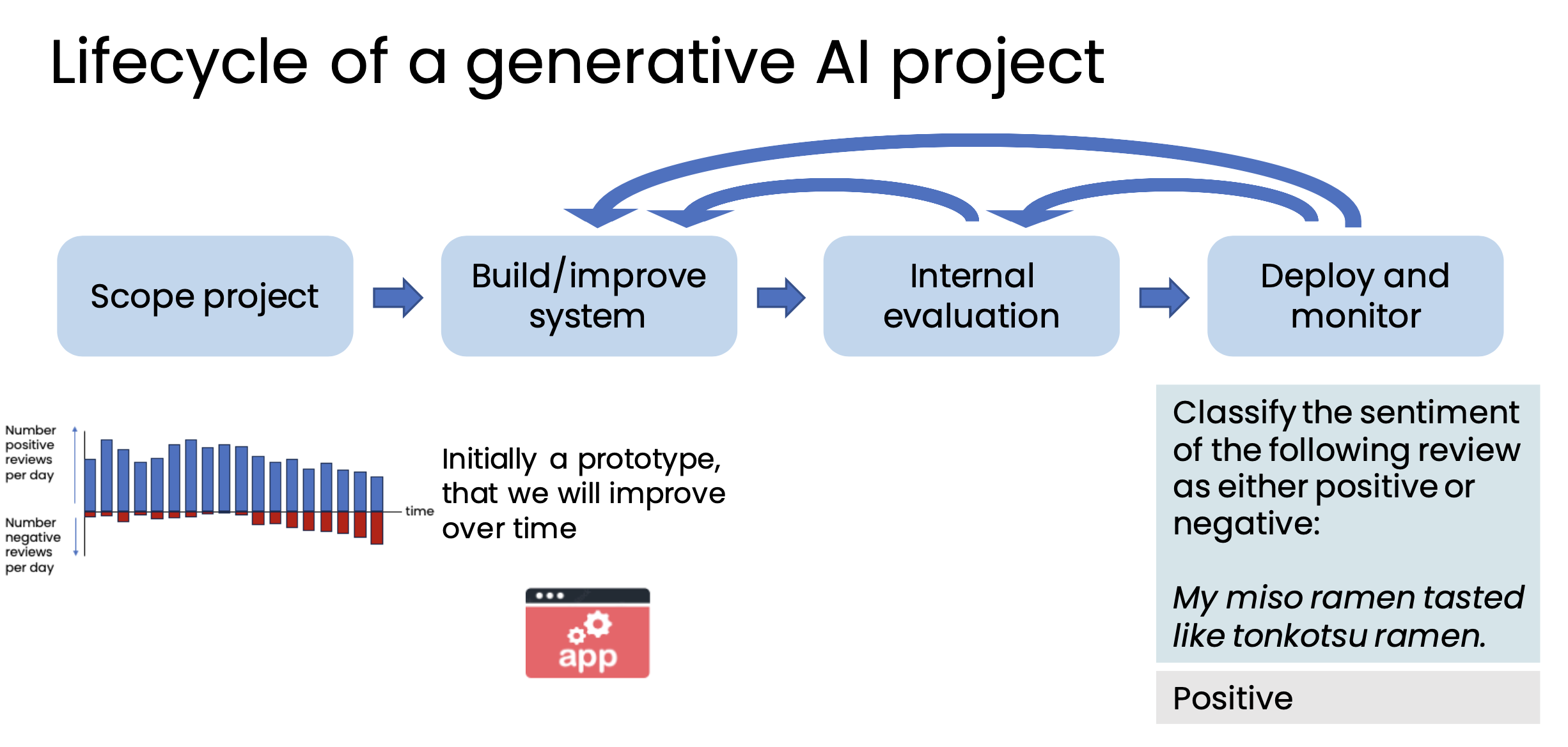 However, building generative AI is a highly empirical (experimental) process β we repeatedly find and fix mistakes.