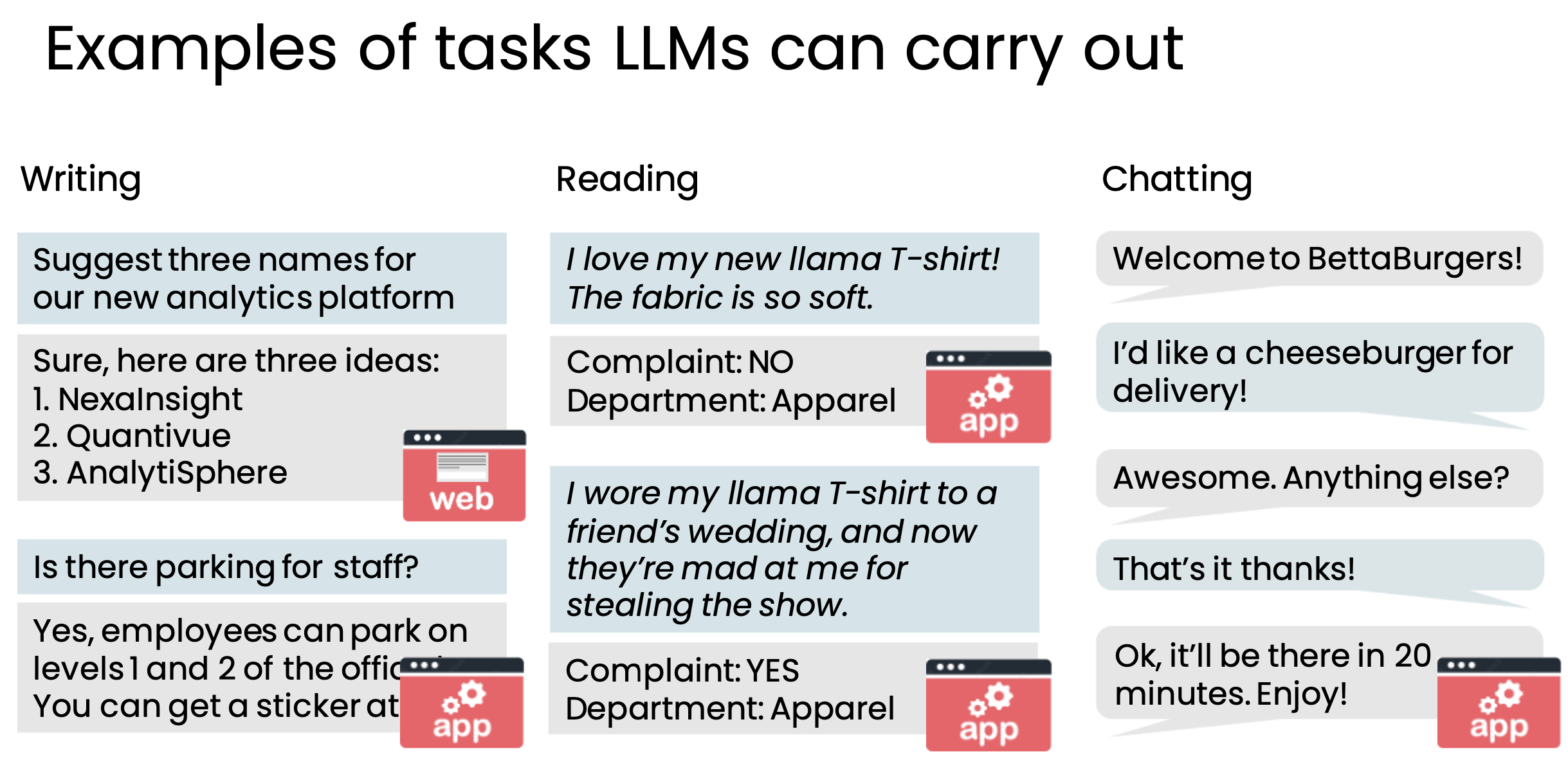Here are some examples of tasks that LLMs can carry out π